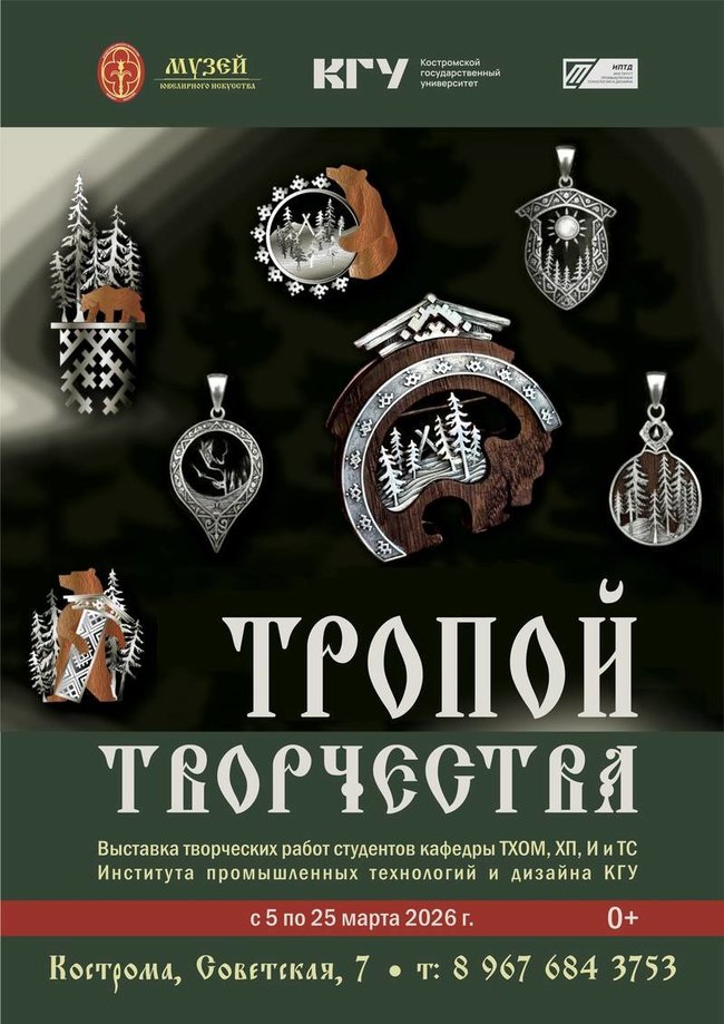 С 5 марта 2026 г. в костромском Музее ювелирного искусства работает выставка студенческих работ «Тропой творчества».